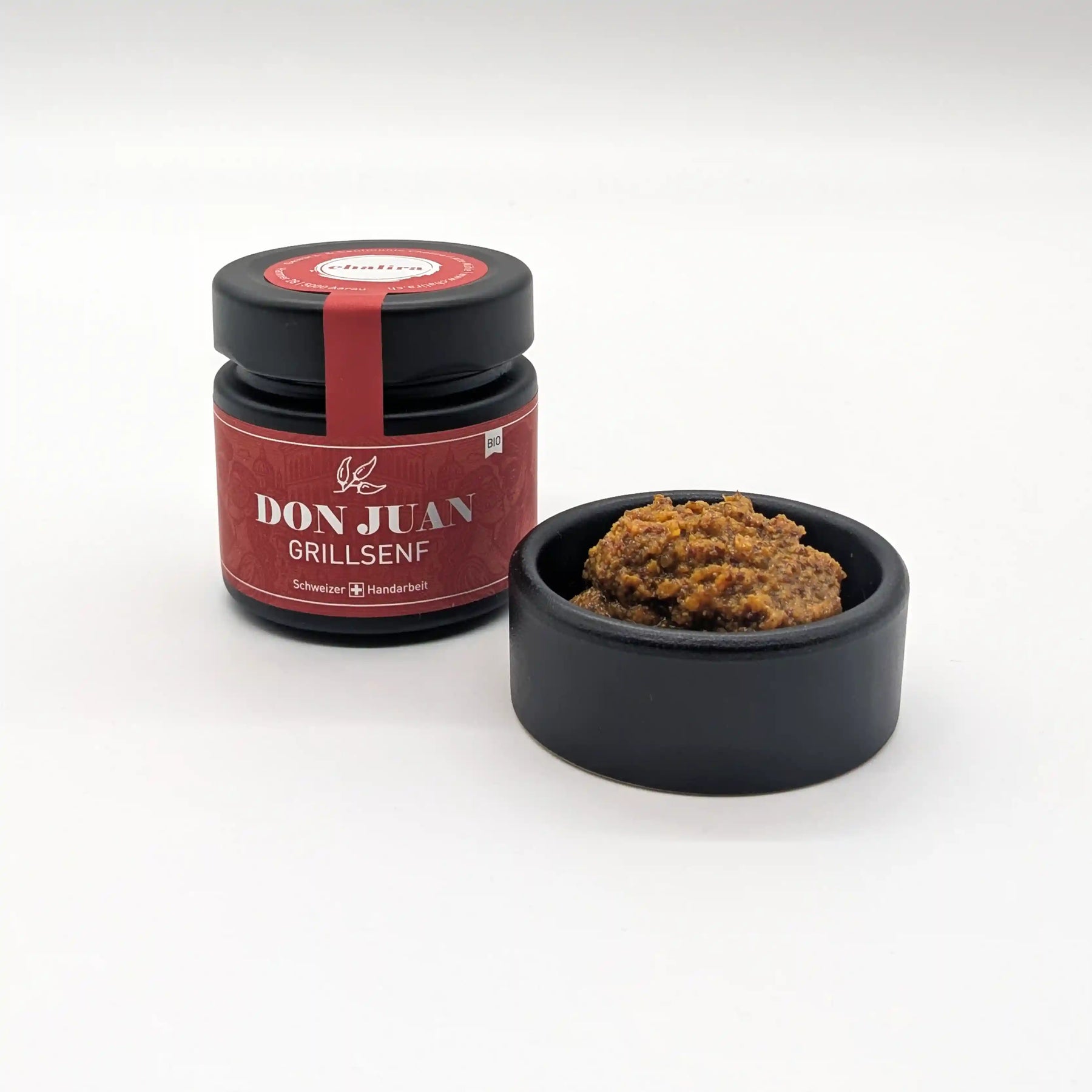 Du planst ein Grillabenteuer: Da darf der Don Juan Grillsenf von Chalira nicht fehlen! Er ist die perfekte Begleitung für deinen Grillabend. Mit viel Liebe und Zeit handgemacht in der Schweiz und nur mit den besten Bio-Zutaten. Er verbindet eine kräftige Schärfe mit harmonischer Würze und einem dezenten, leicht süssen Unterton, der ihm eine besondere Tiefe verleiht.