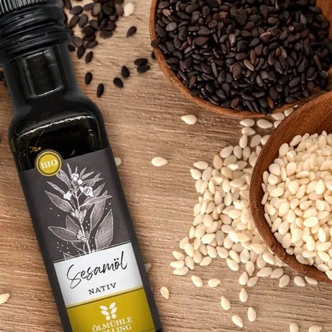 Schonend kaltgepresstes Sesamöl der Ölmühle Solling